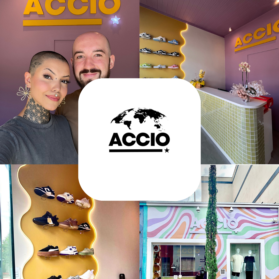 A Accio começou pequena — em uma loja física em Socorro, interior de São Paulo — com uma ideia simples: trazer sneakers exclusivos pra quem realmente entende e vive esse estilo.