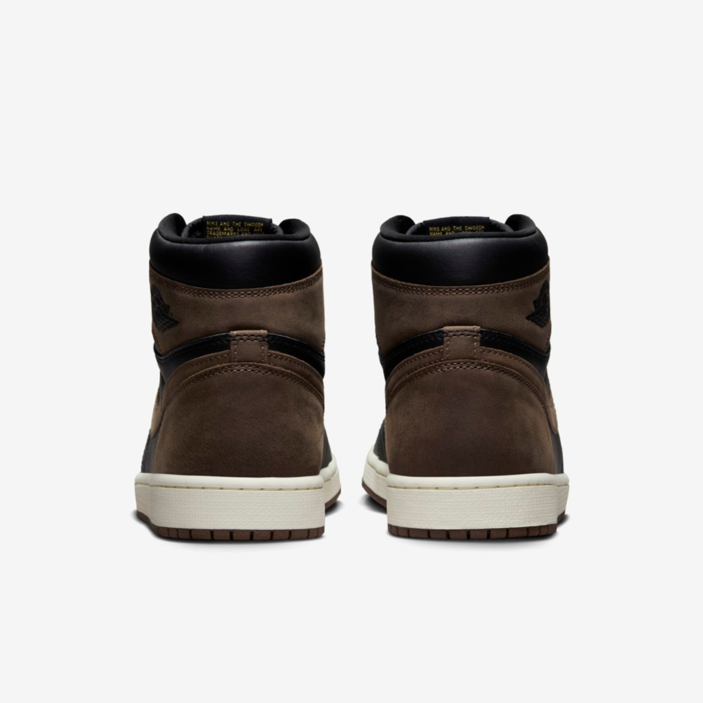 O Air Jordan 1 Retro High OG 'Palomino' combina uma construção luxuosa com o bloqueio de cores de dois tons inspirado no OG. O ícone do tênis carrega um cabedal de couro preto, acentuado com nubuck marrom envelhecido na biqueira, Swoosh, sobreposição de calcanhar e aba na gola. Este último é marcado com um logotipo preto da Wings na lateral, enquanto a etiqueta da língua tecida exibe um logotipo da Nike com letras douradas metálicas. Um acabamento esbranquiçado contrastante é aplicado à entressola, construída com construção costurada na parede lateral e amortecimento Air-sole encapsulado. Sob os pés, uma sola de borracha marrom apresenta um padrão de tração projetado para aderir à madeira.