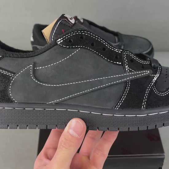 O Travis Scott x Air Jordan 1 Low OG SP 'Black Phantom' continua a série remixada do rapper de Houston centrada no sapato de estreia de Michael Jordan. Este par ostenta um cabedal de nobuck preto com sobreposições de camurça tonal e costura branca contrastante por toda parte. O Swoosh reverso exclusivo de Scott decora o lado lateral, enquanto o lado oposto apresenta um Swoosh tradicional acompanhado pela marca Cactus Jack. As abas de calcanhar incompatíveis exibem um logotipo retrô Wings no sapato direito e um motivo de abelha bordado no esquerdo. O cano baixo é montado em uma sola de borracha preta com construção costurada na parede lateral e amortecimento Air-sole encapsulado.