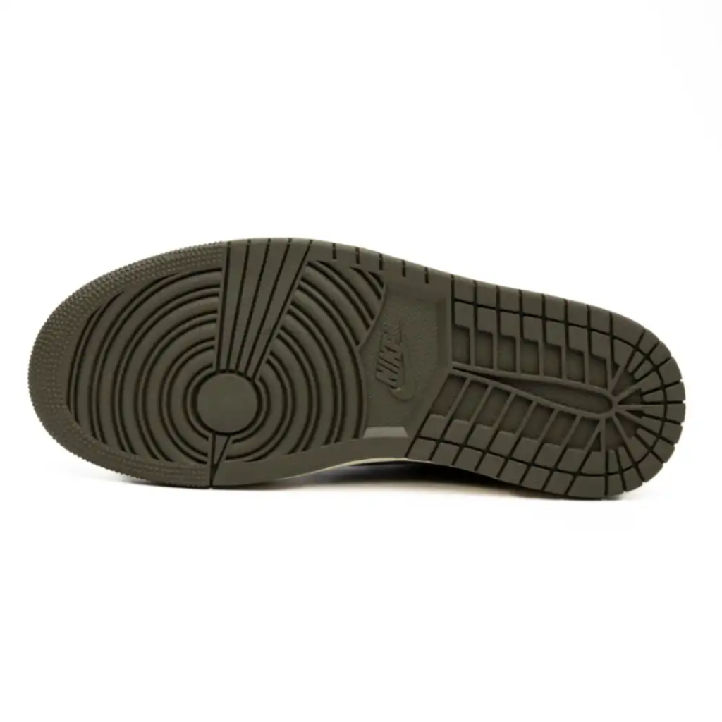 Vestido com um esquema de cores Sail, University Red, Black e Medium Olive. Este Travis Scott x Air Jordan 1 Low apresenta uma base de camurça preta com sobreposições de couro Sail. Outros detalhes incluem Swooshes de camurça verde-oliva, cadarços e marca de língua “Cactus Jack” com detalhes em vermelho na marca de língua “Nike Air” e saltos bordados. Uma entressola Sail sobre uma sola de borracha Olive com palmilhas gráficas completa o design. O sapato estará disponível em tamanho estendido e vem em embalagem especial com um conjunto extra de cadarços.