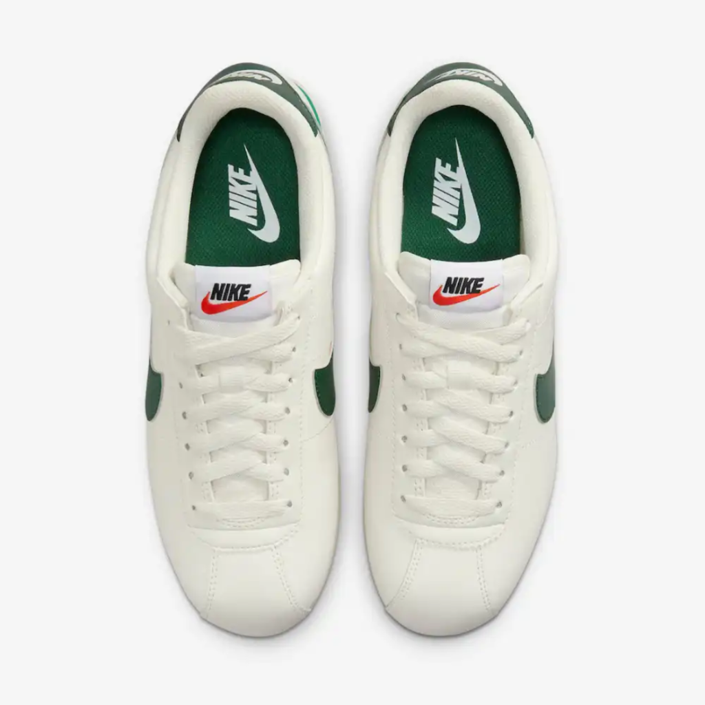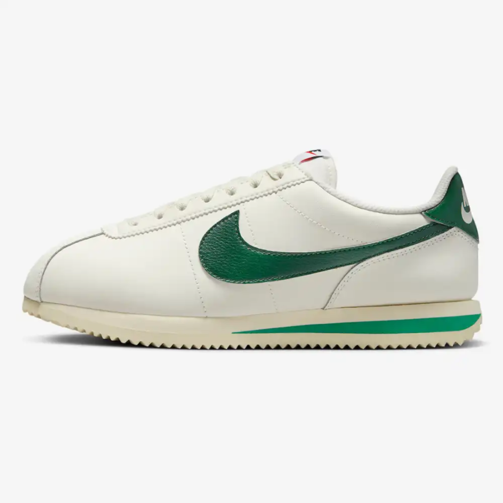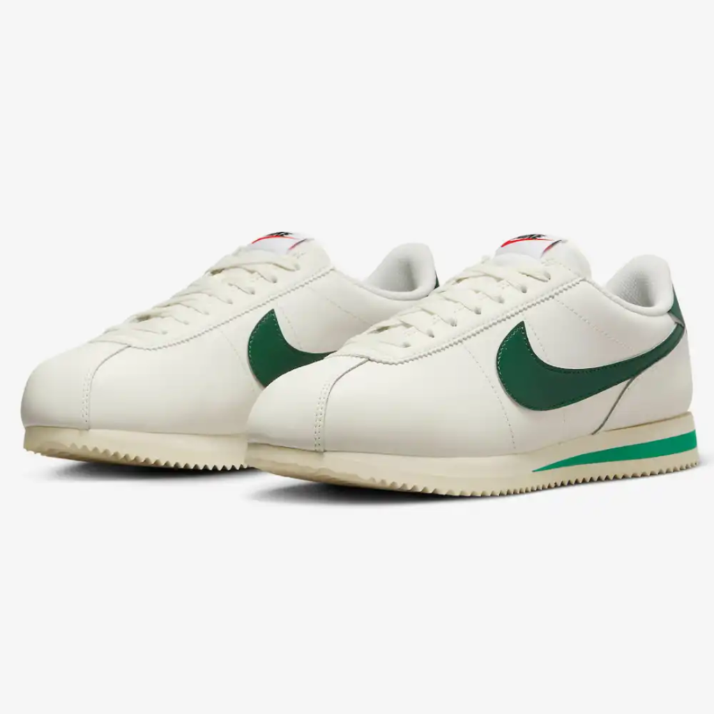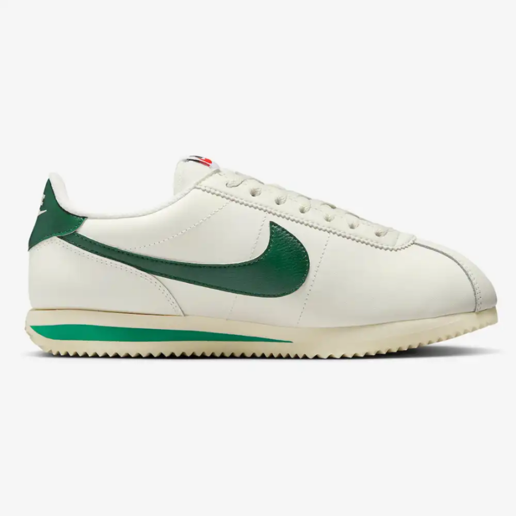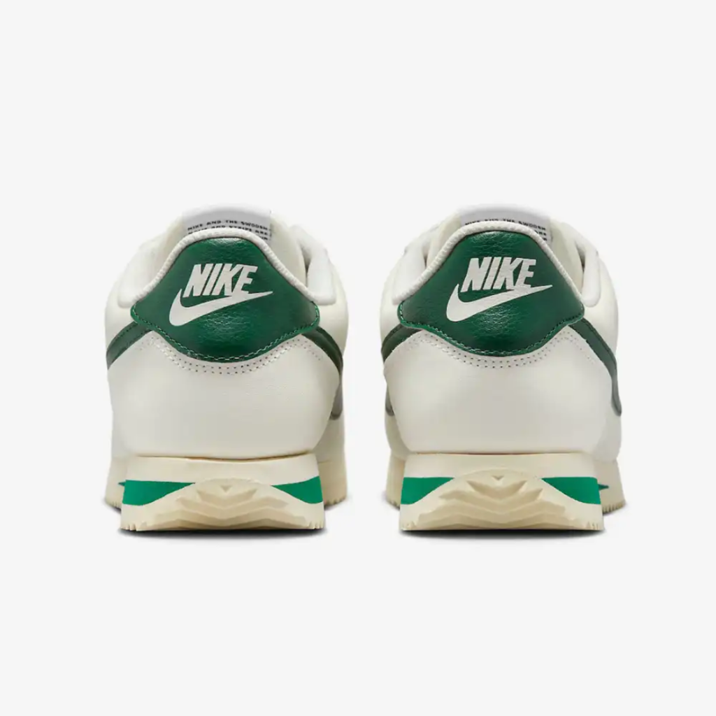 Vestido com um esquema de cores Sail, Gorge Green, Malachite e Coconut Milk. Este Nike Cortez vem construído em couro com Swooshes de couro caído e sobreposições de calcanhar. Línguas de malha e forro em cima de uma sola de borracha envelhecida completam o design.