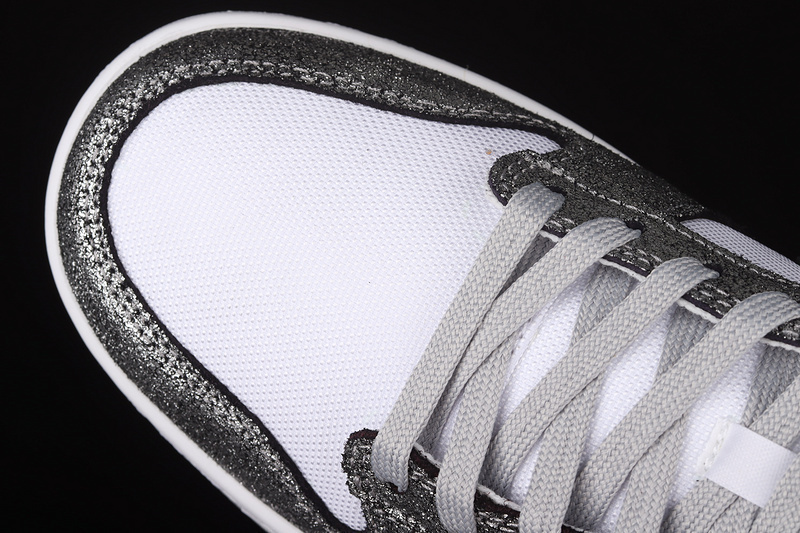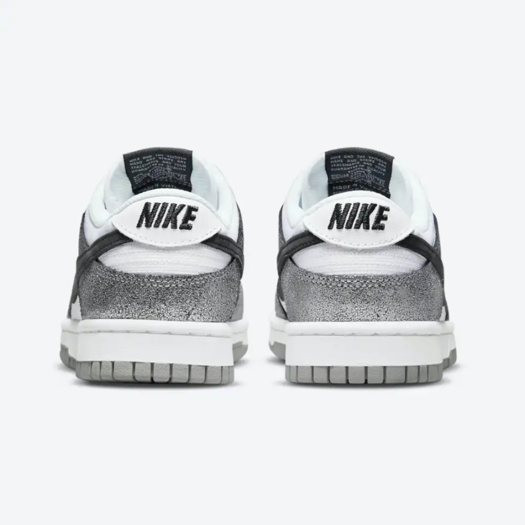 O Dunk Low 'Golden Gals' da Nike trata o sapato de argola retrô com uma reforma cintilante. Cadarços prateados prendem a parte superior, com uma base têxtil branca com sobreposições no antepé e no calcanhar em couro metalizado prateado. Acentos pretos contrastantes pousam no Swoosh e na etiqueta de língua tecida, bem como na marca de palavra Nike bordada na aba de couro do calcanhar. O cano baixo fica em uma cupsole de borracha padrão, com paredes laterais brancas e uma sola de borracha cinza.
