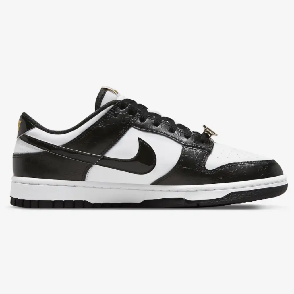 O Nike Dunk Low - World Champs é uma atualização do queridinho Dunk Black, trazendo consigo detalhes em dourado na língua, logotipo da Nike na parte traseira do tênis, couro envernizado e um lace lock no cadarço que remete a um cinto de luta livre.