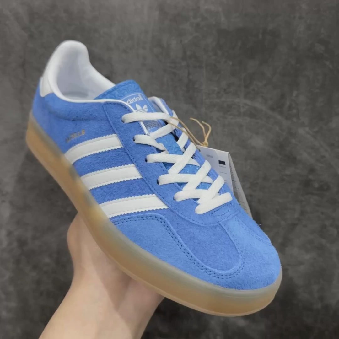 Dos anos 60 até hoje, o adidas Gazelle Indoor Shoes tem sido um item básico de estilo com muita personalidade. Este par continua o legado com um solado de borracha e silhueta clássica. Um cabedal de camurça premium e as 3 listras exclusivas em cores contrastantes brilhantes trazem um acabamento lúdico e expressivo ao visual testado e aprovado.