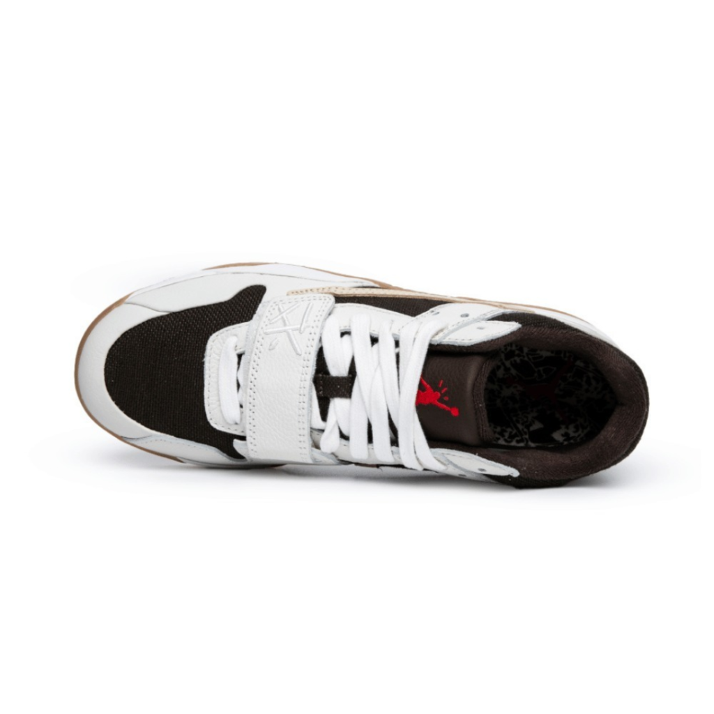 O Jordan Jumpman Jack TR 'Sail' oferece uma coloração terrosa do sapato exclusivo de Travis Scott. Protegido com um fecho de renda tradicional e uma tira ajustável no meio do pé, a parte superior apresenta construção em lona marrom escuro com sobreposições de couro esbranquiçado e um Swoosh bege reverso na lateral. Acentos carmesim contrastantes pousam no ícone Jumpman no topo da língua e no logotipo do rosto Cactus Jack estampado no calcanhar traseiro. Uma sola de borracha aderente envolve as paredes laterais da entressola de espuma branca.