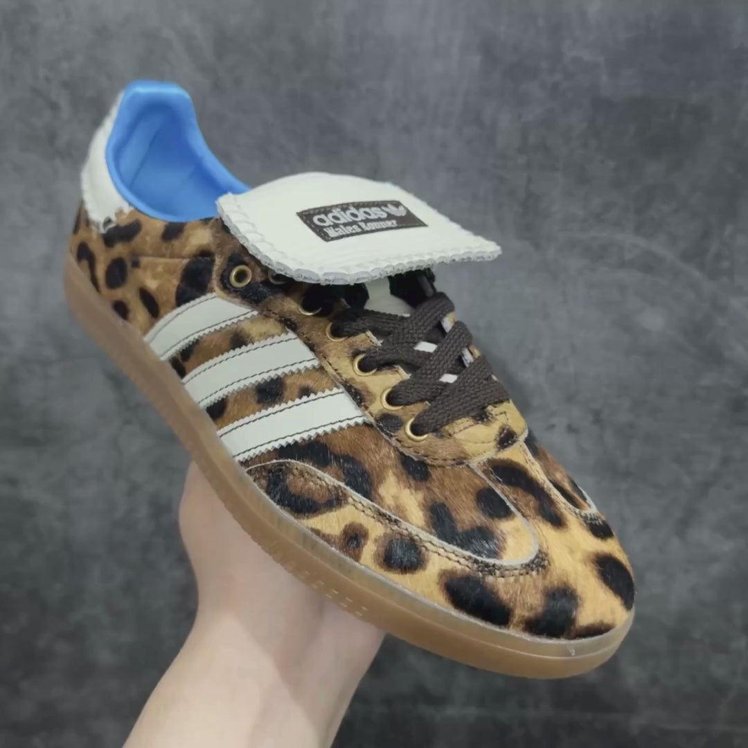 O Adidas Samba Wales Bonner 'Leopard Pony Hair' é uma verdadeira expressão de criatividade, esta versão do clássico retrô ganha vida com uma estampa de onça / leopardo marcante sobre um acabamento de pelo de pônei. As icônicas três listras em couro creme destacam-se em ambos os lados, complementadas por detalhes na mesma cor na aba do calcanhar.